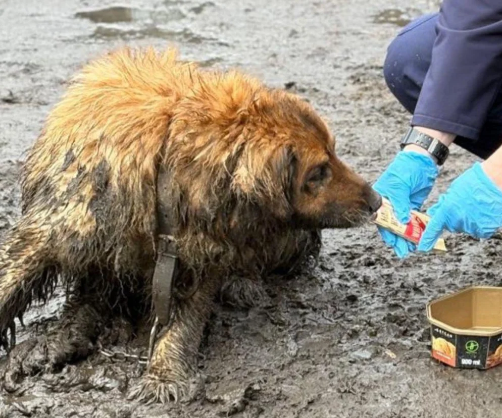 Alarm w Pabianicach. Pies znaleziony na łańcuchu w błocie