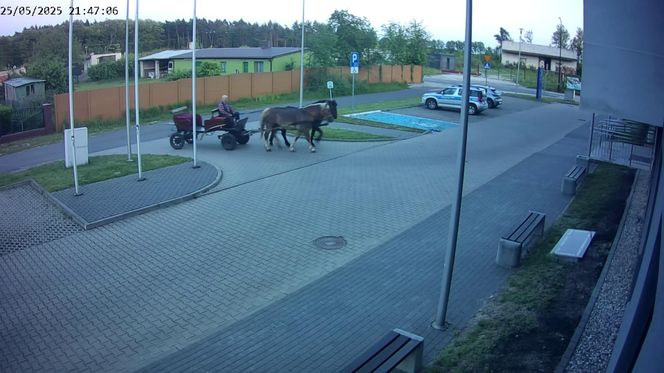 Poddębice. Wóz konny na parkingu komendy. Kierowca nietrzeźwy i z dożywotnim zakazem [ZDJĘCIA].