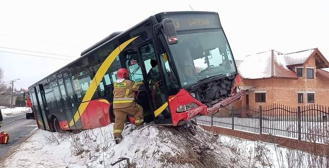 Do zdarzenia doszło około godziny 13.20. Wszystko wskazuje na to, ze kierowca autobusu nie dostosował prędkości do panujących na drodze warunków, w efekcie stracił panowanie nad kierowanym przez siebie pojazdem. Wypadł z jezdni, a podróż skończył na przydrożnej skarpie. Przód miejskiej „trójki” zawisł kilkadziesiąt centymetrów nad ziemią, na pryzmie piachu!